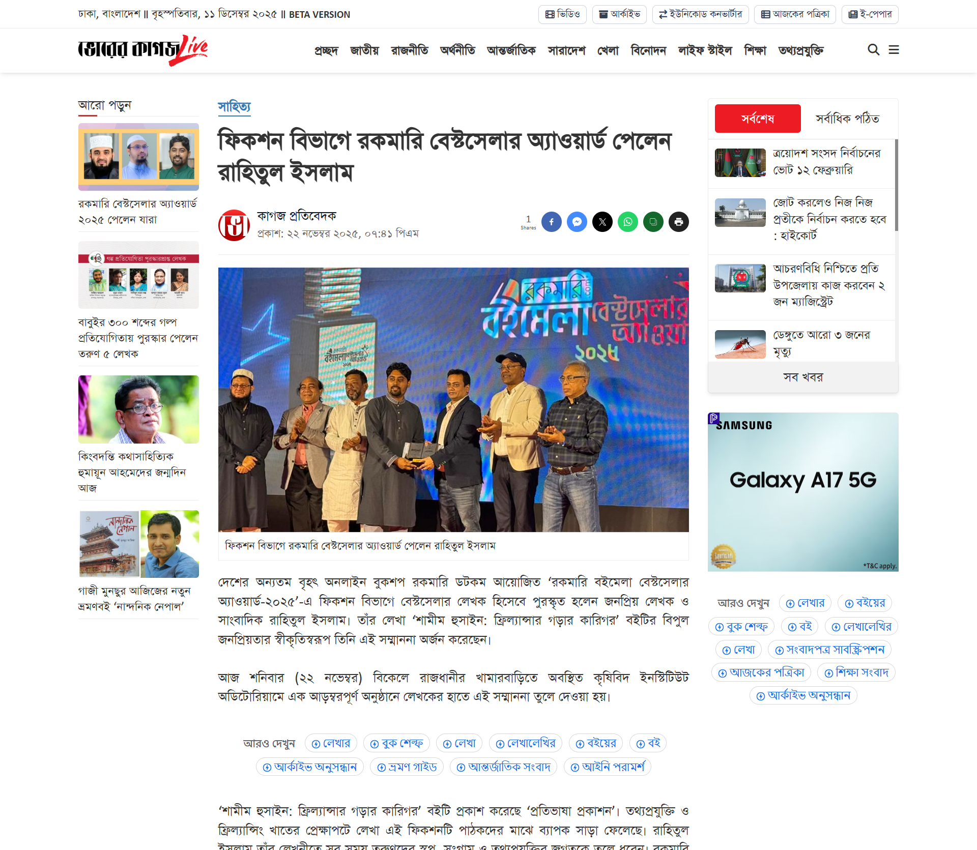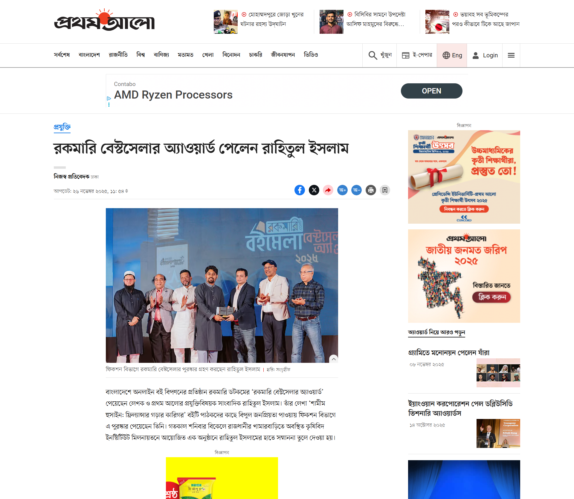 Rahitul Islam is a widely acclaimed journalist and author. The book Outsourcing and Bhalobasar Golpo won the National Freelancing Award 2019, his novel Aparajita, Tale of a Call Center Girl received SBSP Literature Award 2021. In addition to his literary works, he has also received distinctions such as the 2019 Upwork National Freelancer Award, Itel Mobile Award (2017) and honorary recognition from at the ICT Fair in 2016. Those distinctions and praises spotlight his impeccable proficiency with the art of storytelling, experts believe that he is one of Bangladesh’s premier and most influential journalists and writers.